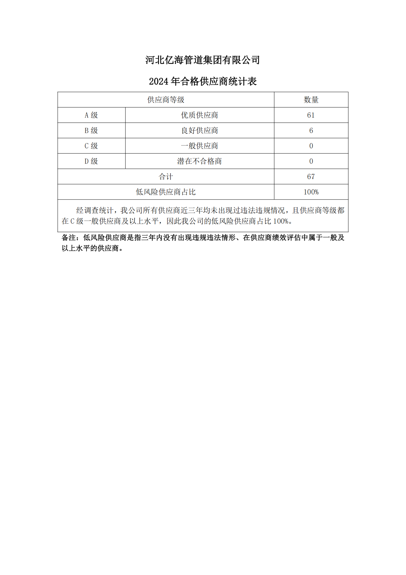 億海公司2024年合格供應商統計表